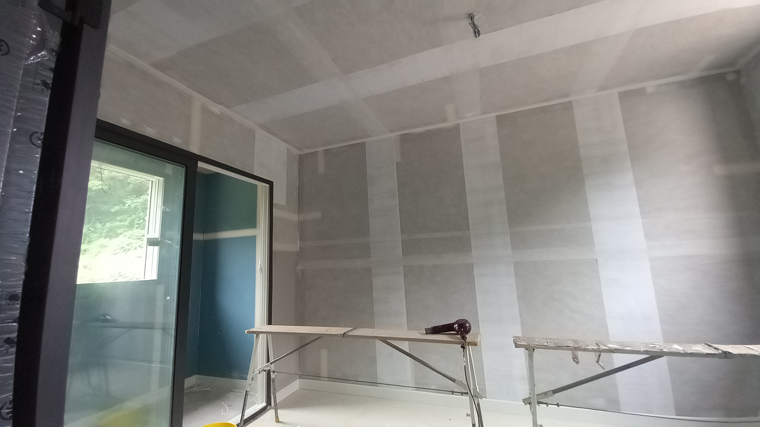 천장 높이가 서로 다를 경우 발판의 높이 다르게 맞춰야 한다. 기본 높이가 아닌 경우 중다리 또는 장다리를 사용해야 한다. 높이에 따른 작업 속도는 떨어진다. 공수를 따질 때 중요한 포인트이다. 또한 고급도배를 하기 위해 부직포와 운용지로 기초 작업을 하고, 합지 벽지로 정배를 당일 시공하기 위해 당일 6명이 투입이 되어 무사히 잘 마무리가 되었다.