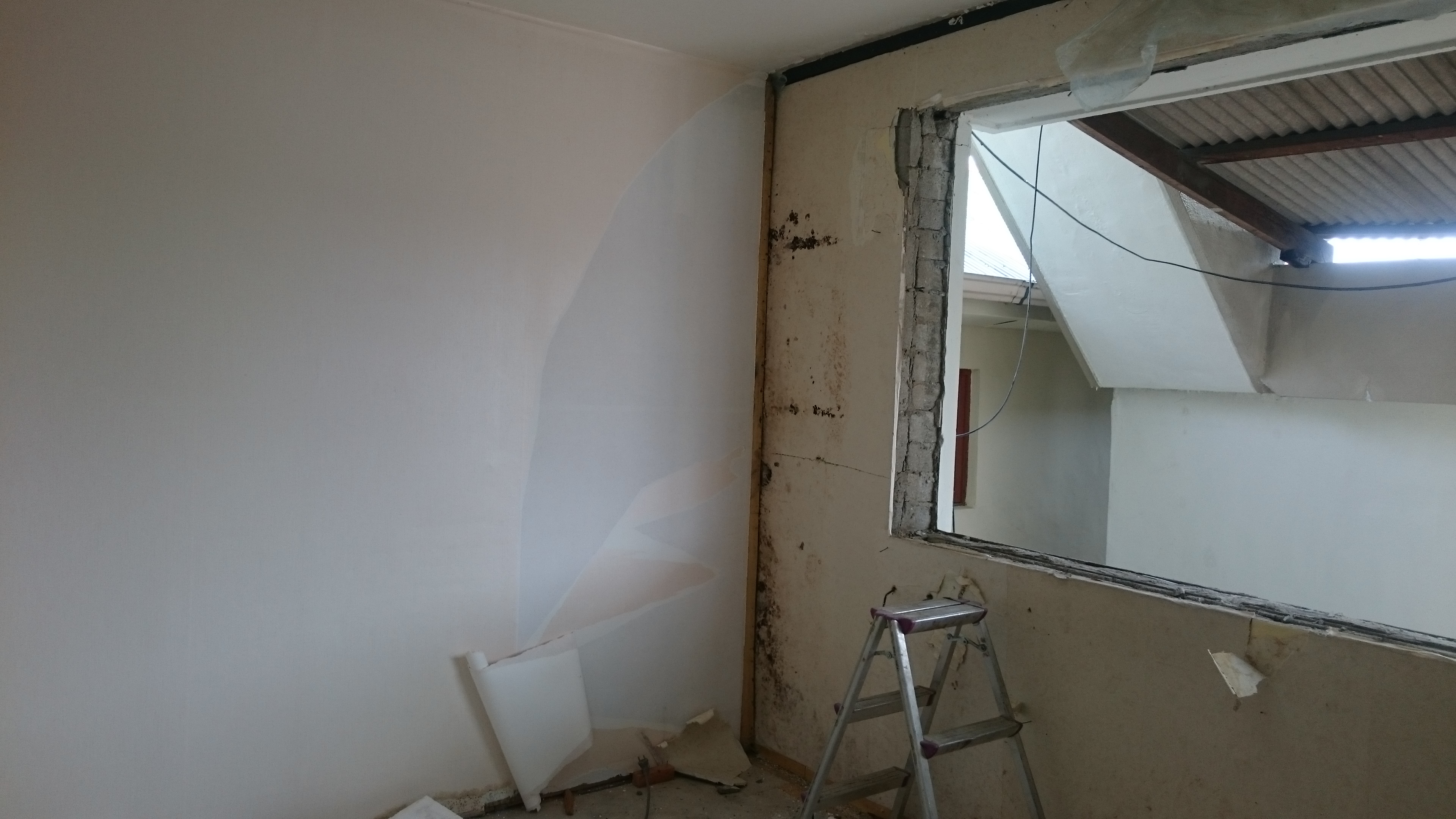 오래된 집 내부 외벽 쪽의 단열 시공된 모습을 볼 수 있습니다. 외풍을 막기 위해 비닐로 먼저 데고, 그 위에 비드법단연재 EPS와 합판으로 마무리를 했습니다. 단열재의 생명은 틈이 없어야 그 효과를 볼 수 있습니다. 비닐 위에 고정할 수 있는 방법으로 합판을 덧댄 후 못으로 마무리를 했기 때문에, 그 가벽이 흔들리고, 공극과 틈이 넓어 단열효과는 없었을 것으로 판단됩니다. 비닐을 빼고, 우레탄폼으로 압착 밀착시공을 했으면 효과는 더 좋았을 것으로 보입니다.