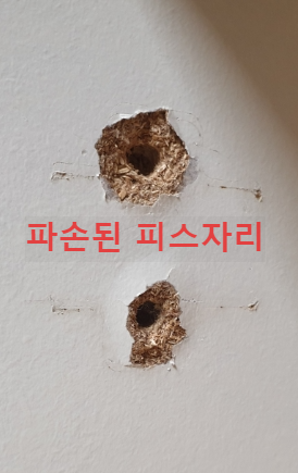 사진처럼 파손된 부분은 주방가구용 목재에 경첩이 이탈되어 생긴 자리입니다. 주방가구, 신발장, 장롱에 사용하는 가구용 목재는 원목, 집성목이 아닌 가공후 남은 목재, 자투리, 본드등을 썩어 재가공하여 재생산된 제품들입니다. 압축 성형을 하여 만든 제품이기에 상당히 우수한 취부력을 갖습니다. 그러나 한 번 뚫린 구멍의 재취부력은 약합니다. 오랫동안 반복 사용으로 목재의 내구성도 떨어질 수 있어 정기적인 관리가 필요합니다. 문을 연 상태에서는 경첩에 모든 힘이 집중되므로 문자체에 무리한 힘을 가할 경우 취부 된 부분 헐거워지거나 약해질 수 있습니다.