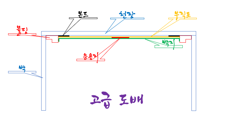 공간 초배 시공의 적응 공간은 천정과 넓은 벽면입니다. 폭이 40 cm 이하의 공간은 공간 초배 시공을 하지 않습니다. 또한 습기가 많은 주방 벽면도 마찬가지입니다. 하나마나 효과입니다. 이 시공을 한 후 벽지를 붙이는 과정이 정배입니다. 정배에 사용되는 벽지는 실크벽지 외에도 광폭합지, 뮤럴벽지 등 다양합니다. 그 벽면의 도배 마감 만족도는 대단히 높습니다. 심지어 광폭합지로 시공했음에도 실크벽지처럼 보이게 만드는 것이 공간 초배 시공입니다.