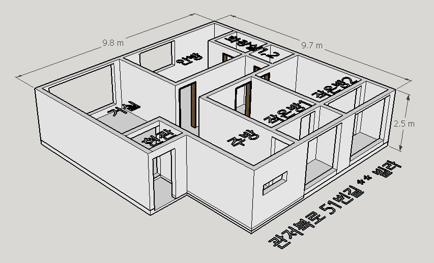 최근에 했던 관저1동 빌라 도배인테리어를 했지만 전체를 볼 수 있는 레이아웃이 없더군요. 그래서 기억을 더듬어 가며 비슷하게나마 재현을 해봤습니다. 정확한 실측으로 구성된 것은 아닙니다. 주변 환경과 우마, 도배지 폭과 도배지 폭수 등을 회상을 하며 옮겼습니다. 각 거주 공간의 위치와 모양등을 보며 이런 집이다라는 것이 쉽게 떠오릅니다. 글로 잘 표현을 해도 상상하는 사람마다 다르게 느껴질 것입니다. 그런 오류를 없애기 위해 레이아웃을 첨부해 봅니다. 창호, 방문, 화장실 위생기, 주방 싱크대등의 섬세한 묘사가 가미가 된다면 더 좋았을 텐데 말입니다. 이 부분을 실현하기 위해 시간과 비용이 더 요구됩니다. 추후 손동작이 더 빨라질 경우 생각해 볼 문제라고 보이네요.