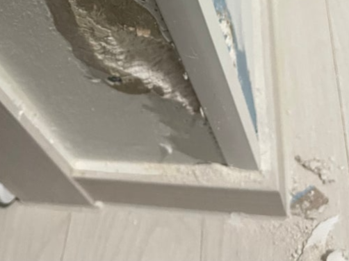 6. 가 재단된 벽지의 외각 자투리는 없앤다. 또한 손상된 벽지의 칼집 먹은 부분을 제거한다.