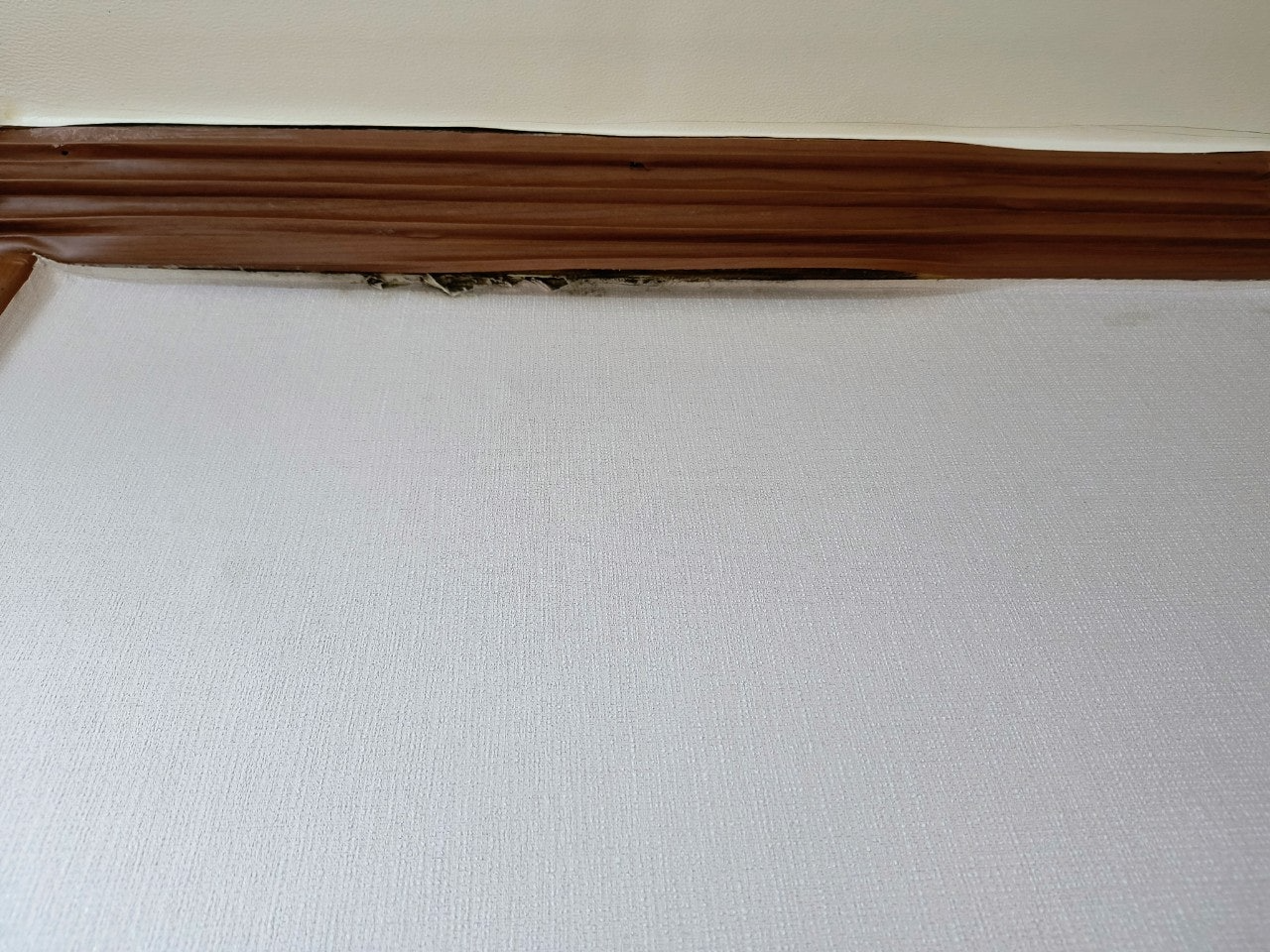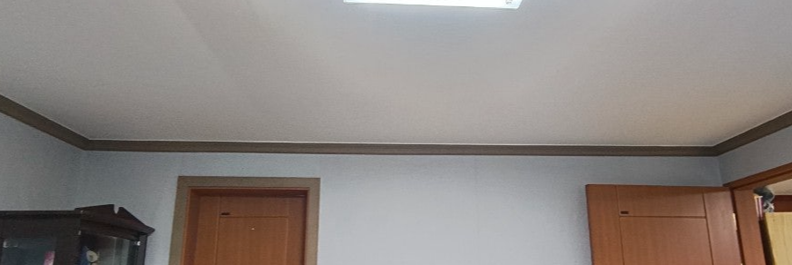 누수 부위 실리콘으로 덮은 후 몰딩 및 도배완료