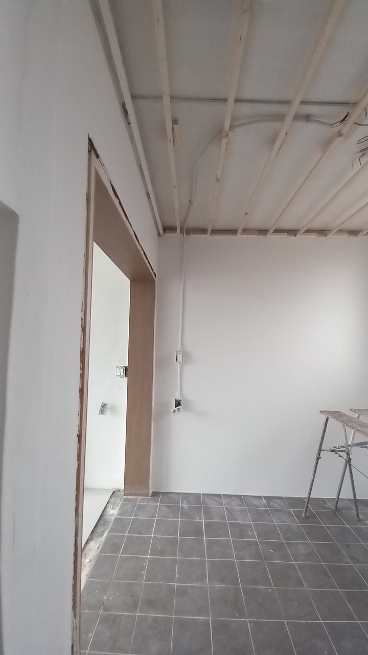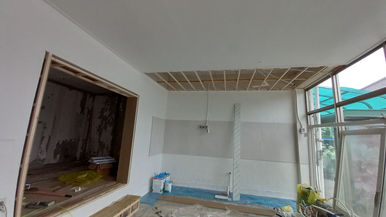 겨울에 춥다고 하여 작은홀 벽 일부를 내부단열재 처리후 가벽체작업을 합니다. 외부와 통하는 문도 폐쇄합니다. 창호을 바꾸지않는 한 여전히 겨울에 추울 것 같습니다. 여름에는 냉방비용이 상승할 것 같습니다. 천장도 약간 내려앉았기 때문에 반자 작업을 다시 합니다. 몰딩작업후 천장은 도배, 벽체는 도장, 바닥은 타일공사를 합니다.