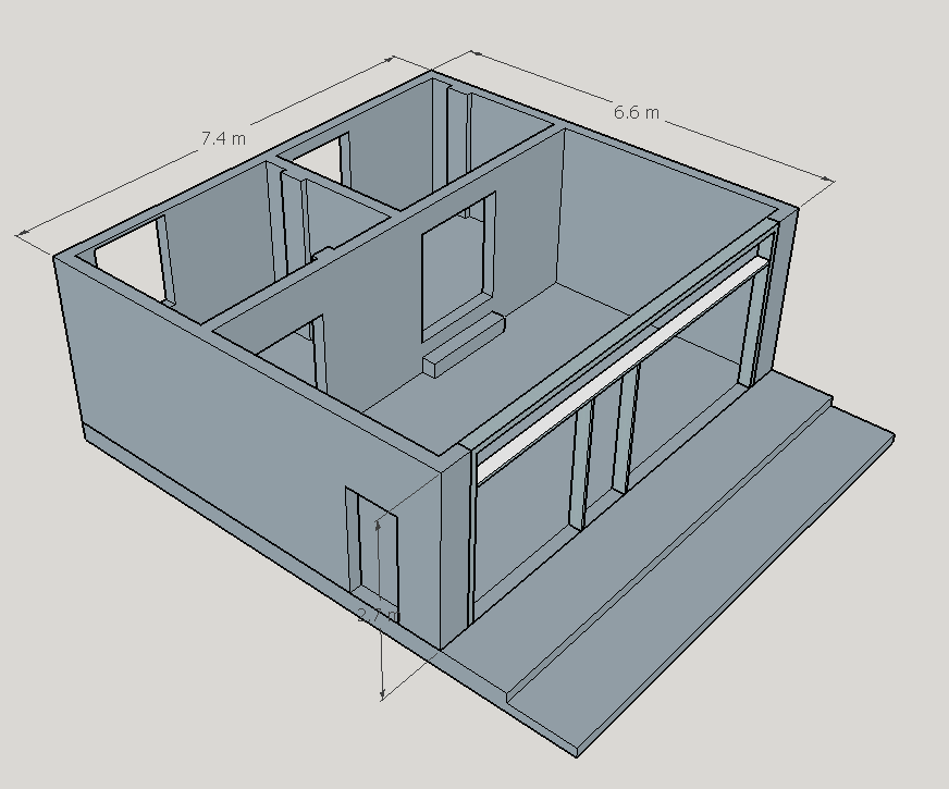 메인 홀, 작은홀 두 개가 있습니다. 주방은 메인 홀에 위치합니다. 화장실은 외부 계단 위에 있습니다. 작은홀 하나는 방을 개조한 것입니다. 메인 홀 바닥과 높은 단차로 중간에 계단을 설치했습니다.