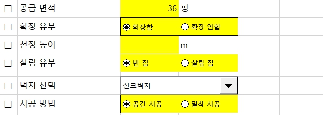 벽지선택뿐만 아니라, 시공방법, 짐의 유무, 천장의 높이 등 종합적으로 고려해서 도배 비용을 산출하게 됩니다. 도배 비용산출부터 복잡해지는 과정입니다. 도배 비용에 대한 업체 문의가 일반인들에는 다소 어렵게 느끼지고, 여러 번 문의하기가 미안한 마음이 들기도 할 것입니다. 이런 이유에서 부담 없이 계산할 수 있는 엑셀 프로그램을 첨부하고자 합니다.