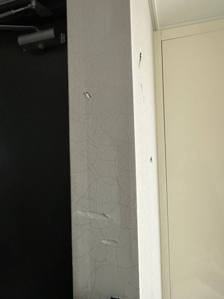 찍힘과 찢어짐 같은 벽지 손상에 대한 보수는 크기, 수량, 발생 밀도등에 따라 달라집니다. 크기는 단위 면적(25 ㎠, 가로 5cm, 세로 5cm) 이내이어야 합니다. 수량은 한 벽면에 임의의 위치 5개소 이내이어야 합니다. 발생 밀도는 단위 면적 (1 ㎡, 가로 1 m, 세로 1 m)에 5 개소 이어야 한다고 생각합니다. 벽지 손상된 크기, 수량, 발생 밀도가 위에 언급한 것보다 크거나 넘어갈 경우 보수가 어려워지고, 보수 이후에도 더 지저분해지기 때문입니다. 이런 경우에는 한 면갈이를 추천드립니다.