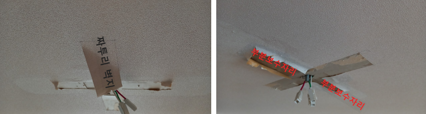도배의 마지막은 마지막장 벽지를 붙이는 것이라고 생각합니까? 아닙니다. 풀 먹은 벽지가 벽이나 천장에 붙어 말라야 끝이 납니다. 건조가 마지막 과정입니다. 시공업체 사장님이 건조되는 과정을 지켜보지는 않습니다. 건조 주의사항을 알려주고 철수를 합니다. 창문과 출입문 닫고 맞바람 없이 자연스럽게 건조되어야 합니다. 습한 실내 환기를 위해 창문과 문을 활짝 열어 환기시키는 것은 하자를 만드는 것입니다. 자연건조가 가장 적합한 건조입니다. 전체 도배뿐만 아니라, 부분 보수도 이점 주의하셔야 합니다.
