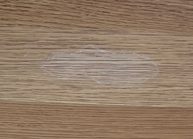 - 수분 또는 습기의 영향: 마루 바닥에 액체가 자주 쏟아지거나, 습도가 높은 환경에 지속적으로 노출되면 마감재가 들뜨거나 벗겨질 수 있습니다. 특히 사진에서 벗겨지는 형태가 불규칙한 것을 보면 수분이나 습기의 영향일 가능성을 생각해 볼 수 있습니다.
