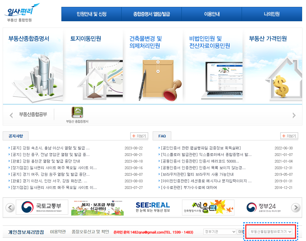- 각 지방자치단체의 부동산 정보 통합 열람 사이트