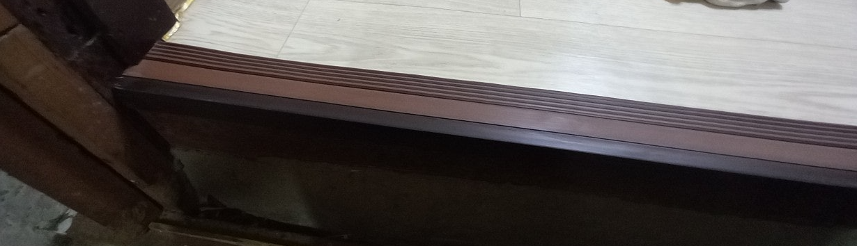 고객님께서 보내주신 사진처럼, 바닥재가 만나는 턱진 부분이나 문턱, 혹은 계단처럼 높낮이 차이가 있는 곳은 특히 논슬립 처리가 필수적입니다. 물기가 닿지 않아도 발을 헛디딜 위험이 있는데, 만약 장판이나 타일처럼 매끄러운 재질이라면 그 위험은 더욱 커지겠죠!