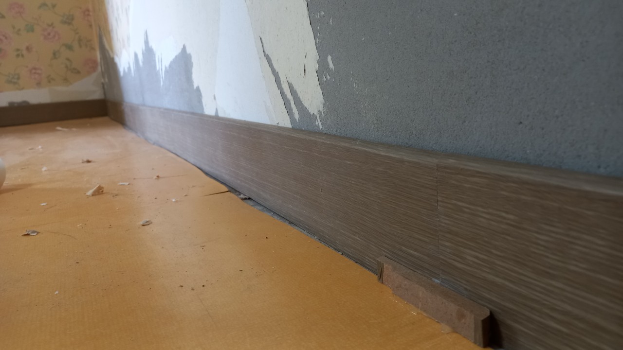 기존 설치된 바닥 몰딩, 장판, 굽도리등 벽면에 붙어 있는 모든 장애물을 제거합니다. 끌, 스크래퍼, 쇠헤라등을 이용해 벽면처리를 한번 더 해줘야 합니다. 만약 습기가 있다면 습기를 제거해야 합니다. 습기가 생기는 곳에는 바닥몰딩을 설치할 수 없습니다. 몰딩이 부풀어 오르며 쉽게 떨어질 수 있습니다.