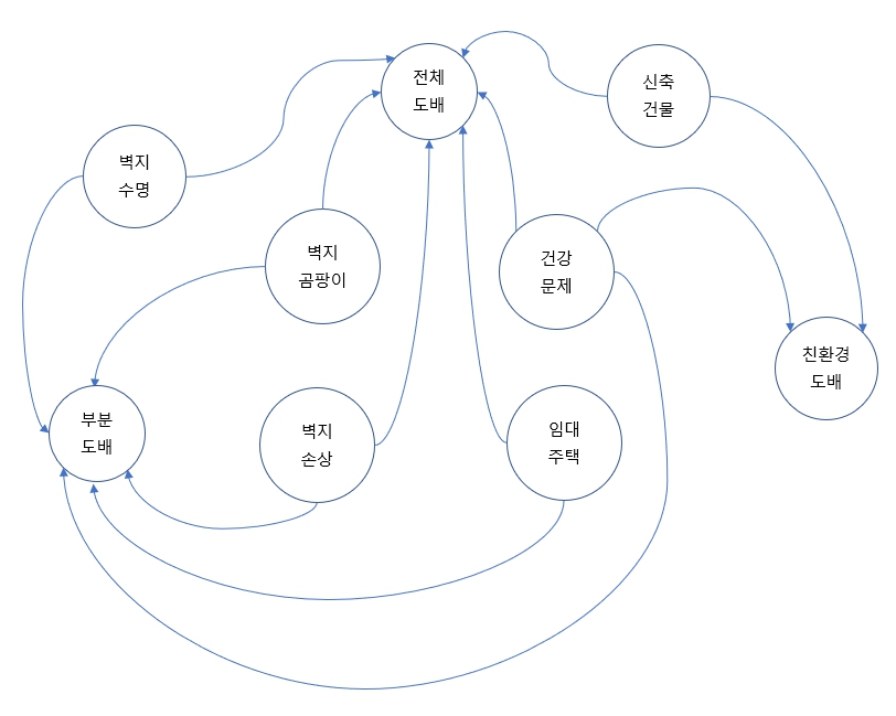 도배할 면적 또는 공간에 따라서 전체 도배와 부분 도배로 나눌 수 있습니다. 찍히고, 찢어지고, 떨어지고, 색상이 변하는 벽지 손상과, 이물질과 벽지 곰팡이로 인해 벽지의 기능을 충분히 하지 않을 경우, 그 부분만 할지, 전체를 할 지에 대해 고민을 해야 합니다. 벽지의 묻은 이물질, 알레르기등의 건강상의 이유로도 전체, 부분 도배 또는 친환경 도배를 해야 할 것입니다.