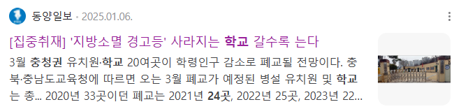 | 사라지는 학교, 텅 빈 교실 - 저출산 시대를 위한 대안 (1) | 2025.02.21 |