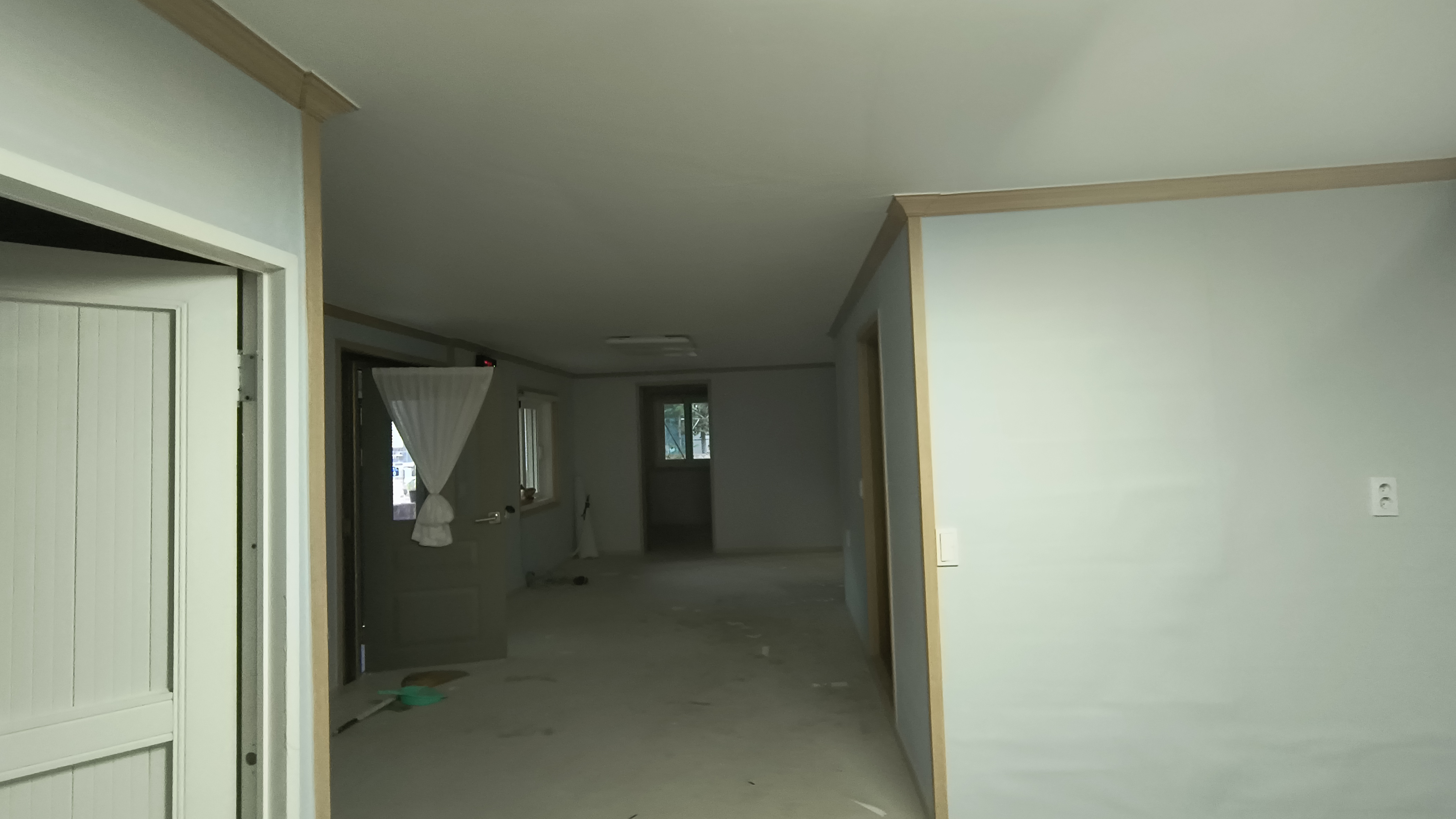 거실, 주방, 방 1,2은 바닥몰딩[걸레받이]을 먼저 합니다. 바닥몰딩[걸레받이] 작업은 도배 정배보다 선작업입니다. 그러나 도배 기초작업인 박리작업이 선행됩니다. 기존 벽지를 제거해야 합니다. 작업 이후 거주자의 쾌적하고 위생적인 환경을 제공하기 위한 작업입니다. 이왕이면 다홍치마 아닐까요. 추가가 투입되는 비용이라도 그 만한 가치는 충분히 있다고 생각됩니다. 도배작업을 자주 하는 작업 아닙니다. 짧게는 몇 년에서 길게는 10년 이상 지난 이후에 가능한 작업이기 때문입니다.