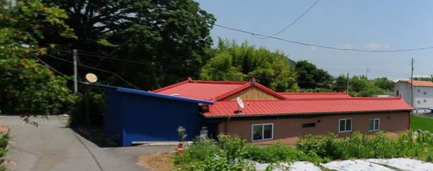 정문으로 들어가기 위해서는 오른쪽으로 내려갔다 왼쪽으로 꺽어들어가야 한다. 별도의 대문은 없다. 집 마당 앞에 논이 있어 특별히 담도 없다. 집 마당 앞, 마주 보는 곳이 안채이고 왼쪽으로 사랑채가 있다. 오른쪽은 창고로 사용하는 중인 거 같다. 안채의 현관문을 열면 복도와 방문이 바로 왼쪽에 있다. 왼쪽 방문을 열면 주방과 방이 두 개가 있다. 주방 쪽에는 큰 창문이 넓게 있다. 주방과 연결된 곳을 거실이라고 해야 할까, 주방과 거실사이에는 30cm의 단차가 존재하며 거실이 더 놓다. 주방 바로 옆에 방이 하나 있다. 거실처럼 방이 주방보다 30cm의 단차를 형성하고 있다.