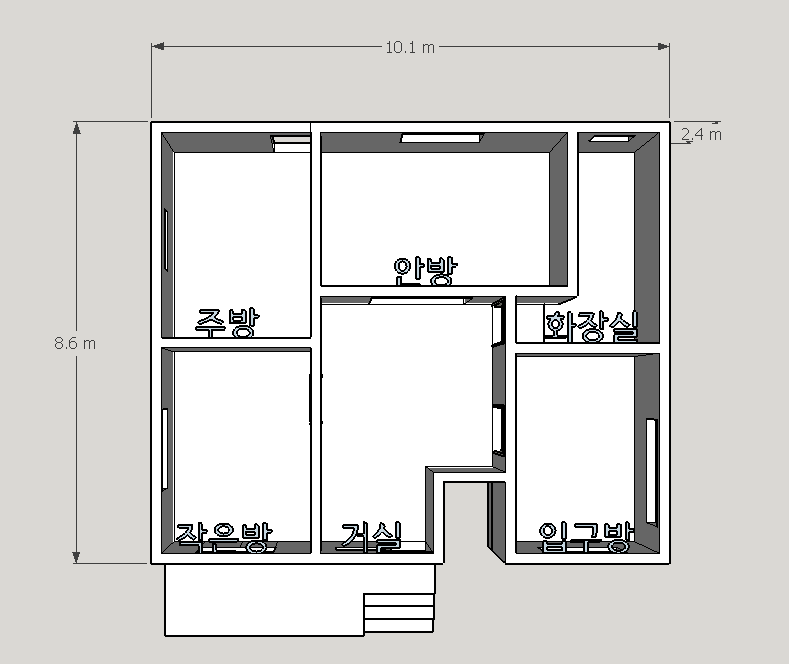 2024년 4월 18일에 올렸던 시골집 인테리어 (1/2)에 관한 스케치업 레이아웃을 작성해 보겠습니다. 백문이 불여일견 아닐까요. 또한 사진으로 설명이 안되는 구조를 볼 수 있는 기회입니다.