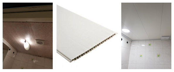 욕실처럼 습기가 많은 공간에 쓰이는 천장용 건축자재입니다.