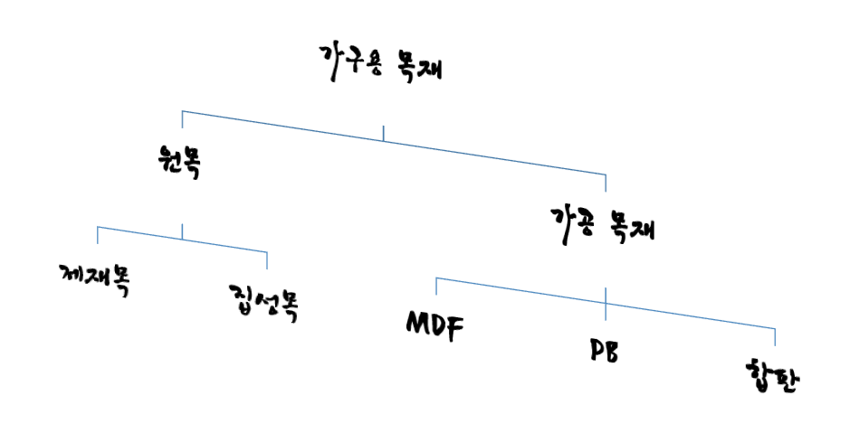 가공하지 않는 나무 자체를 말합니다. 제재목과 집성목으로 나눌 수 있습니다. 제재목은 통나무를 적당한 두께로 자른 목재입니다. 제재목의 크기는 제한적입니다. 이를 넓히기 위해 자른 제재목을 조합하여 붙인 것을 집성목이라고 합니다. 원목은 고급 가구에 많이 사용되지만, 모두 다 친환경 가구가 아닙니다. 합판 등의 가공목재에 원목을 얇게 입혀 파는 제품들도 있습니다.