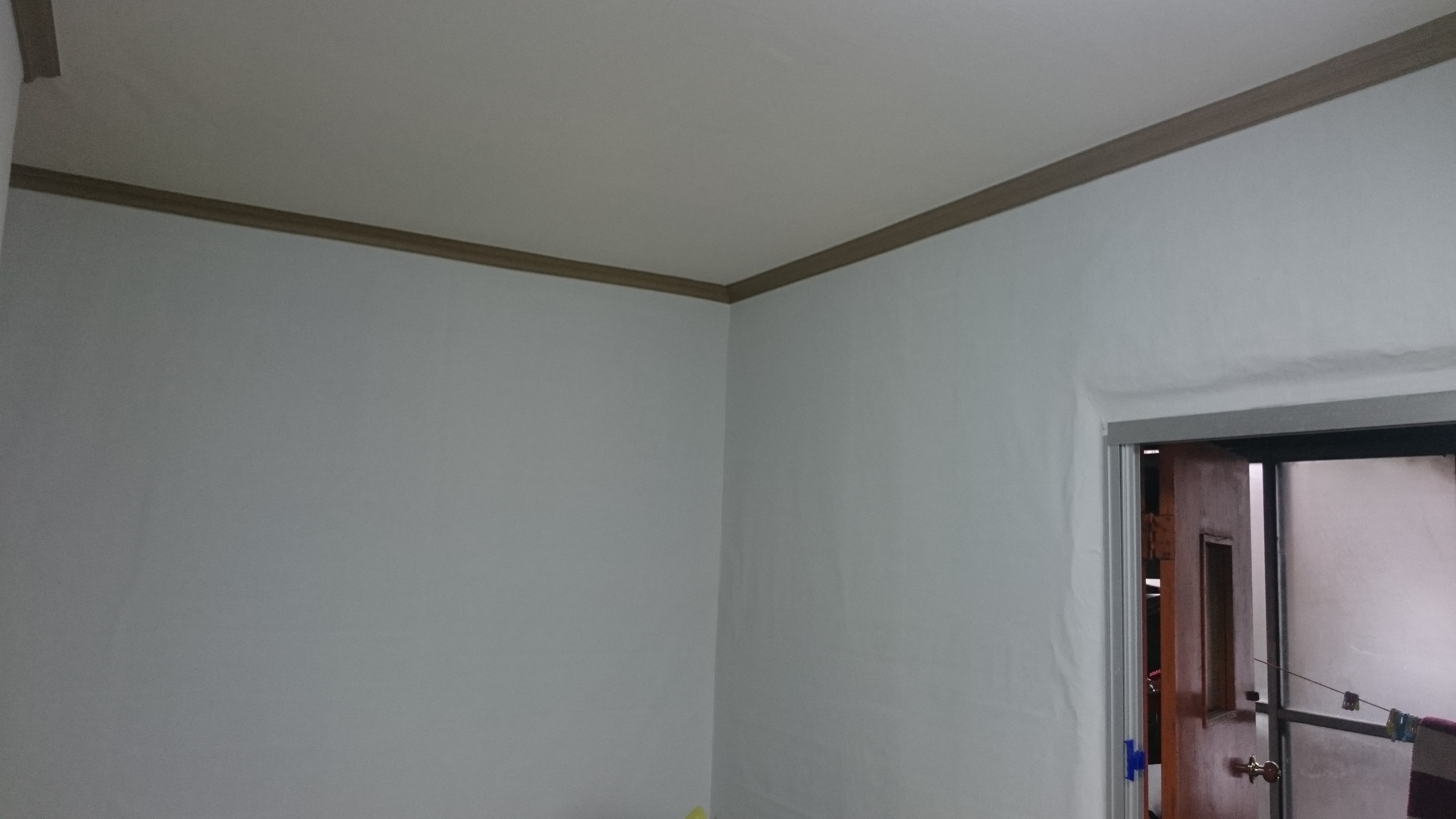 천장 높이까지는 2.5m 정도입니다. 작은 공간이라고 해도 천장도 공간초배 작업을 합니다. 벽과 천장 모두 실크벽지로 고급도배를 합니다.