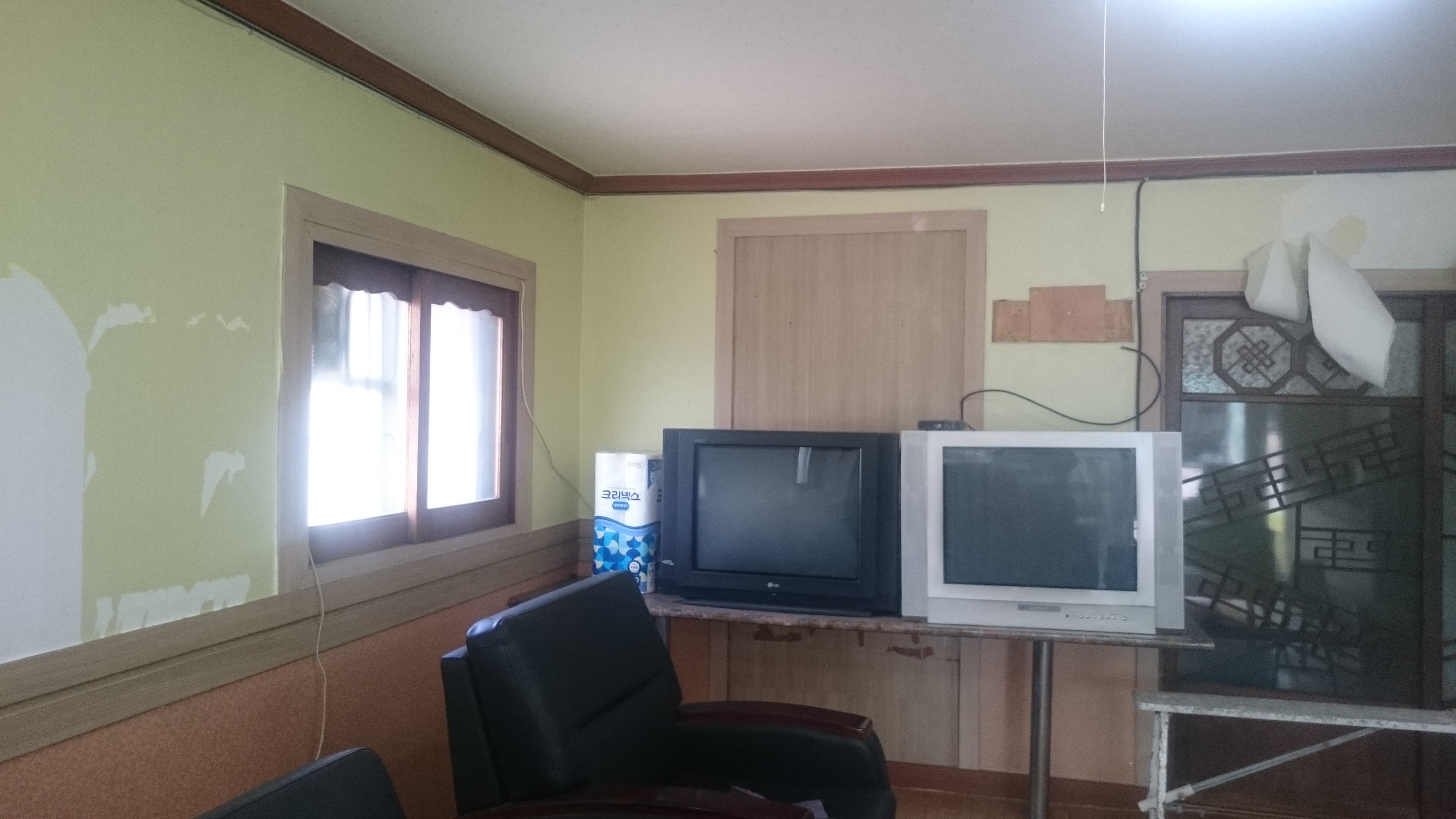 인력사무실, 도배로 천장과 벽을 바꿨어요.