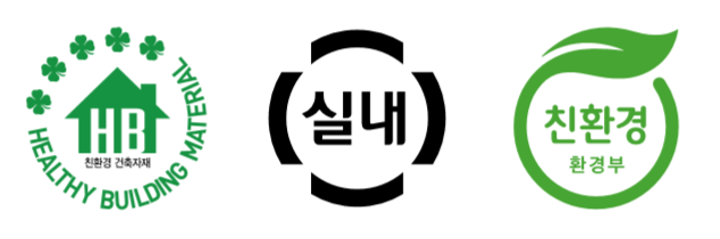 《실내》표시가 있는 건축자재는 실내에서 사용하기 위한 최소 기준을 만족했다고 생각하시면 됩니다. HB마크와 친환경마크는 《실내》 마크보다 더 강력한 기준입니다.