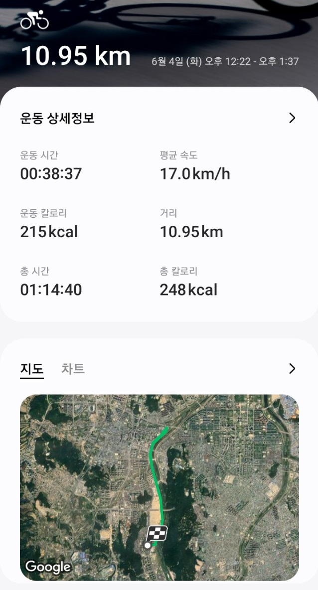 뇌 건강을 위해 자전거를 타고 짧게 갔다 왔습니다.