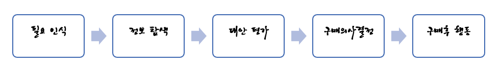 구매의사결정과정은 5단계로 말할 수 있습니다. 필요인식, 정보탐색, 대안평가, 구매의사결정, 구매 후 행동입니다. 구입은 구매의사결정까지 단계이며, 구매 후 행동은 시공 또는 셀프시고입니다. 장판으로 교체하기로 마음먹기까지가 구매의사결정이라고 할 수 있습니다. 어느 공간의 바닥재를 교체해야 한다는 의식이 생겼으며, 바닥재의 종류와 특징을 조사해서, 제품별로 교체할 경우 얻을 수 있는 점등을 비교 평가합니다. 교체할 제품을 결정하게 됩니다. 제품별 비교, 대한 평가한 결과, 장판 마감재로 구입하는 과정입니다. 장판은 다른 바닥재에 비해 셀프 시공이 쉽습니다. 필요한 공구도 몇 개 안 됩니다.
