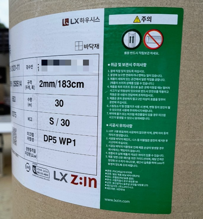 왜 이 방법이 최선일까요? 장판은 같은 제품명이라도 생산 시기에 따라 미세한 색상 차이(LOT 차이)가 발생할 수 있습니다. 태그에 있는 LOT No.와 Serial No.까지 알고 있다면, 나중에 보수용 제품을 구할 때 가장 유사한 제품을 찾을 확률이 훨씬 높아집니다. 그래야 부분 보수 후에도 이색짐 없이 깔끔하게 마감할 수 있습니다.