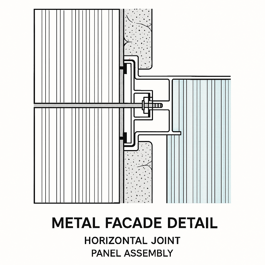 네, 철, 알루미늄, 스테인리스 스틸 등 대부분의 금속 파사드는 유사한 공법으로 시공됩니다. 일반적인 시공 방식은 다음과 같습니다: