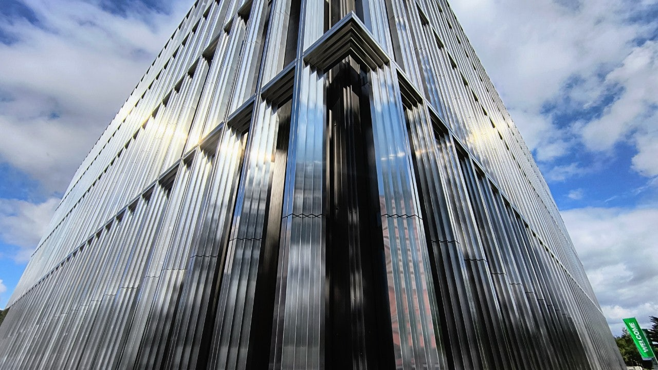 공장에서 금속판을 성형 및 조립해 현장에서 끼워 맞추는 방식입니다. 사진의 경우 이런 캐세트형 금속 패널로 보입니다.