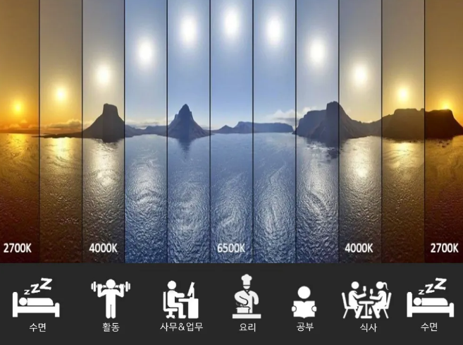 색온도 | 3,000K(2,700K) | 4,000K | 6,000K (6,500K) |