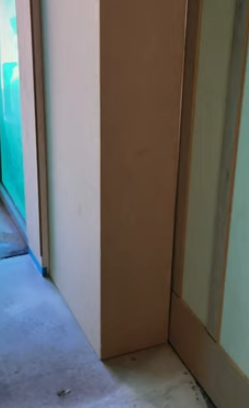 - 뒤틀림 발생 원인: 우리가 세우는 가벽의 뼈대(각재)가 건조 수축하거나 외부 충격을 받을 때, 지지되지 않은 모서리 부분이 쉽게 휘거나 뒤틀리게 됩니다. 이는 마감재(석고보드)에 응력을 집중시켜 필연적으로 모서리 크랙을 유발합니다.
