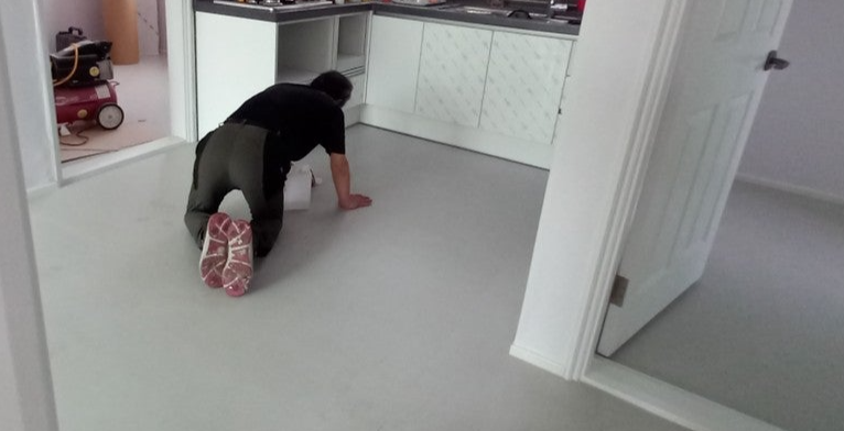 사진 설명 : 마감 전, 손으로 확인 중인 바닥면