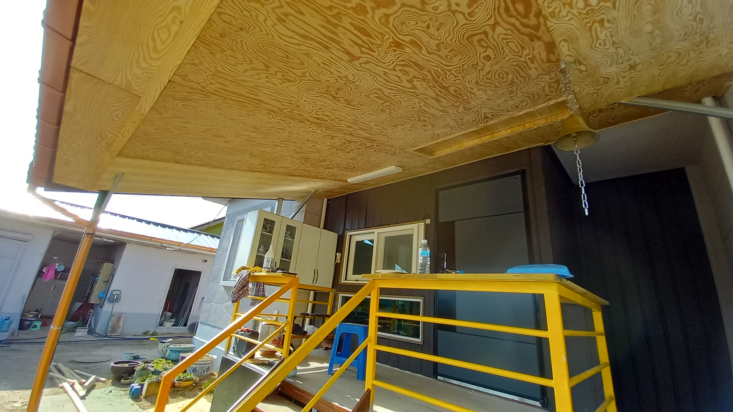 이틀 동안 일을 한 내용을 한 번에 담아보도록 하려고 한다. 이제껏 잘하지 않았지만 다른 작업에서의 연장선상에 있다고 보이는 작업으로 이번의 나의 일상을 꾸며보려고 한다. 일반 단독 주택의 계단 데크가 있는 집 진입로의 처마 안쪽을 보강하는 일이다. 어찌 보면 목수가 해야 할 일을 내가 맡아하고 있었다. 마무리까지 잘 된 상황이다. 집 사장님께서 시공 인건비를 줄여볼 생각으로 하루만 고용할 생각이었지만, 계획과 실행이 어긋났다. 얼마 되는 않는 면적 (대략 천정 크기가 가로 약 5m, 세로 약 3m, 면적은 약 15㎡, 간략하게 약 5평 정도)이지만, 방의 천장과는 다르다고 봐야 한다.
