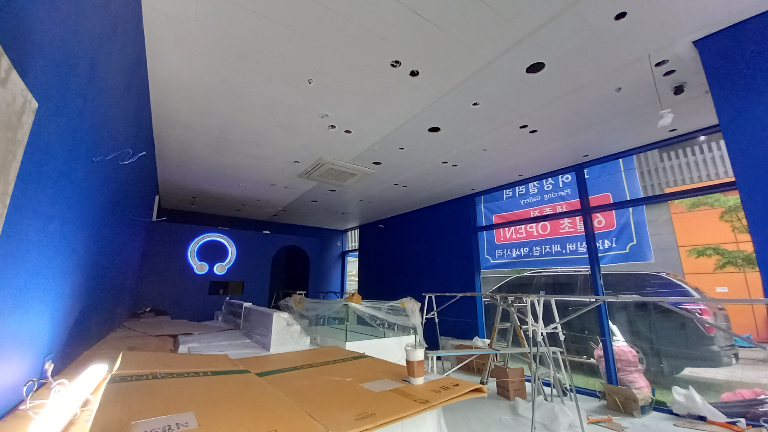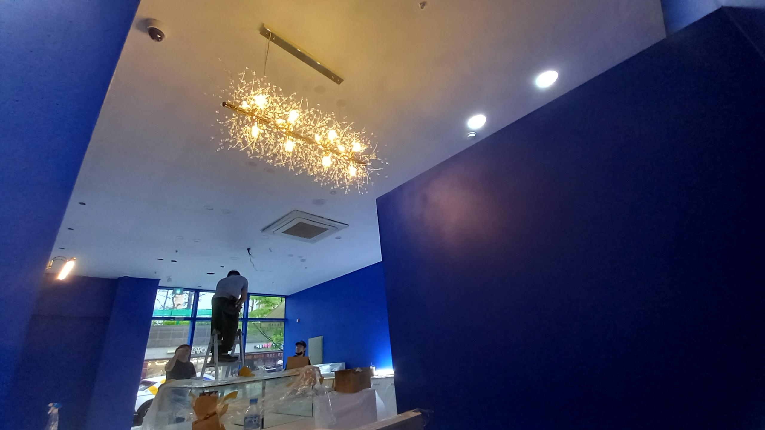 이 현장의 천정 면적은 약 50㎡(5.6m x 8.8m, 15평)이며 부직포와 운용지로 기초를 하며 그 위에 정배를 하는 고급도배를 할 예정이다. 견적은 추후 사용량을 기준으로 계산할 것이고, 작업 방법은 재차 현장 사장님께 간단히 설명을 드린 후 작업에 들어가면 된다. 이 현장의 또 다른 특징 중 하나는 천고 높이와 업소용 가구가 있다는 것이다.