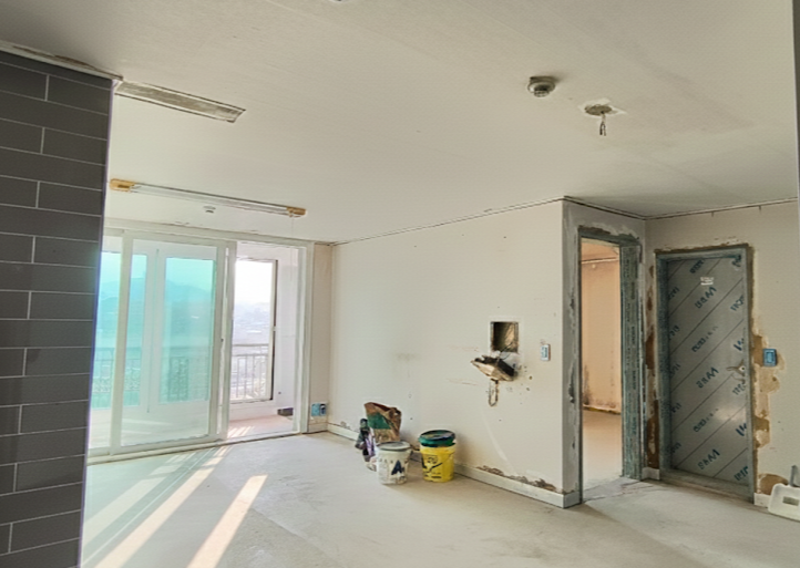 - 벽면과 바닥 상태가 그대로 보이는 장면
