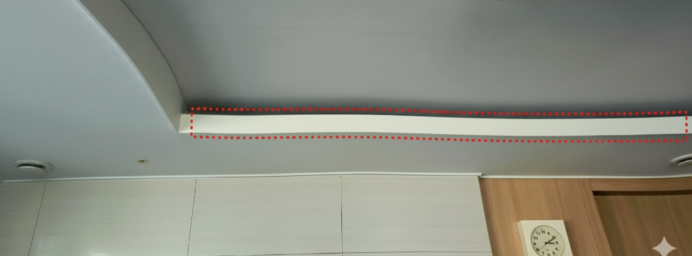사진설명 : 천장 처짐을 보완하지 않은 상태.