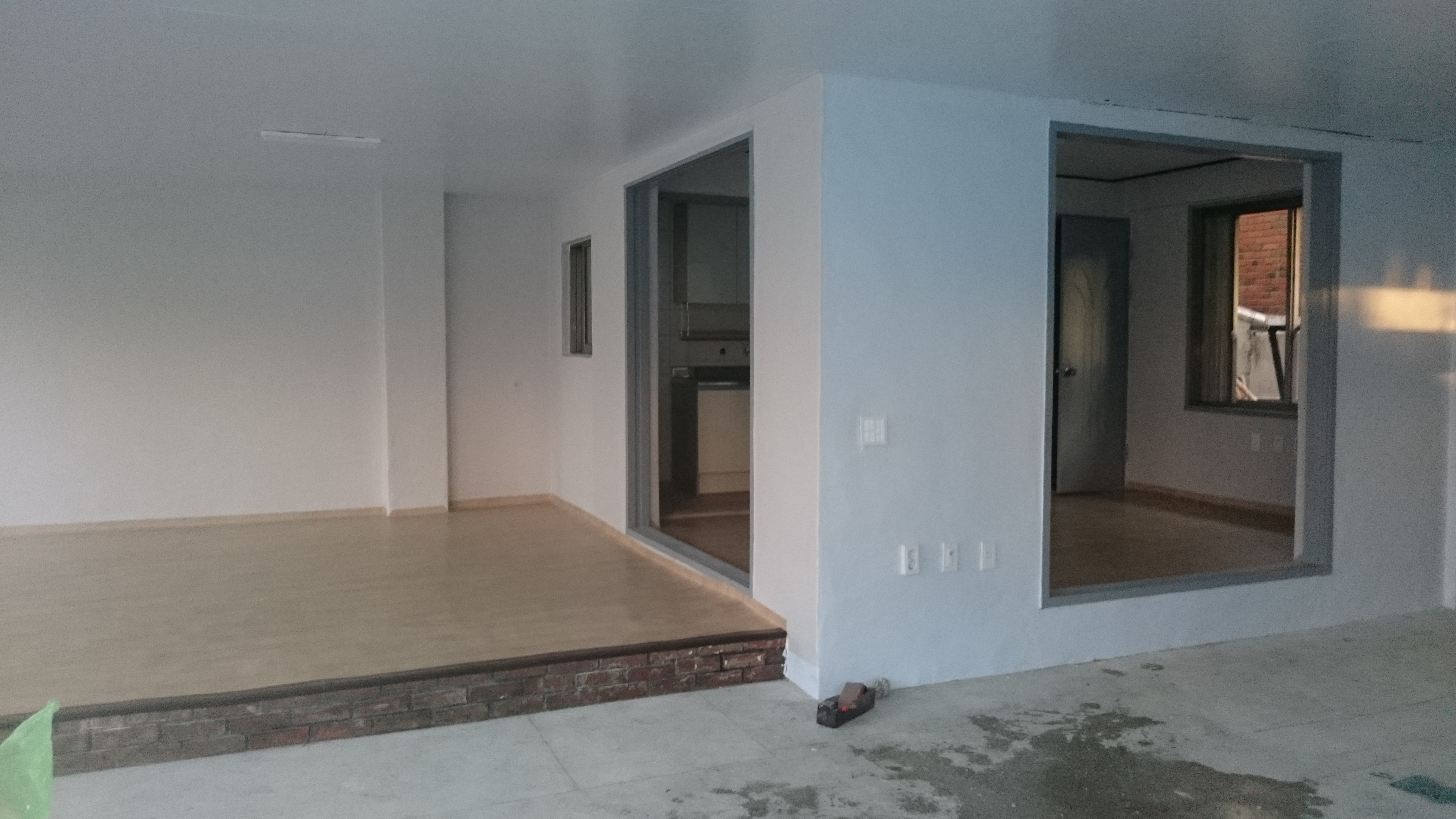 기존 임차인이 계약만료로 내부를 비운 상태입니다. 주방에 후드, 싱크대 자리 등등으로 예상할 수 있는 업종은 식당이었던 같은데 새로운 임차인도 똑같은 업종을 차리는 것 같습니다. 주방, 의자가 있는 테이블과 앉아먹는 좌식 테이블 자리로 구분이 됩니다. 별도로 문만 열면 침실 공간이 있습니다. 침실 공간에는 옷장 등이 주거 생활 용품등이 있습니다.